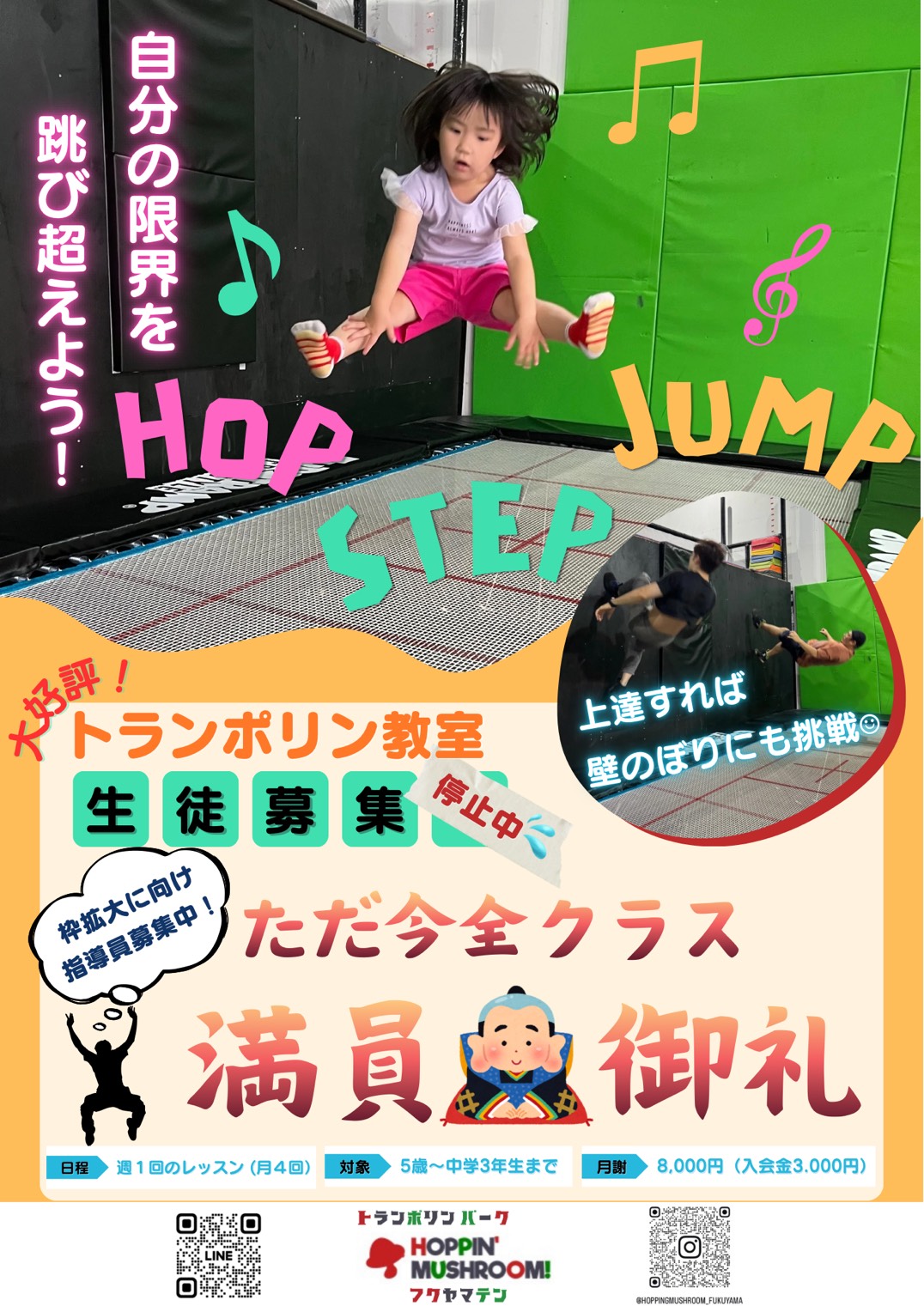 ホッピンマッシュ!は2017年に広島でスタートしたトランポリン施設です。 大人も子どもも、目標を持って挑戦できる場所を目指しています。